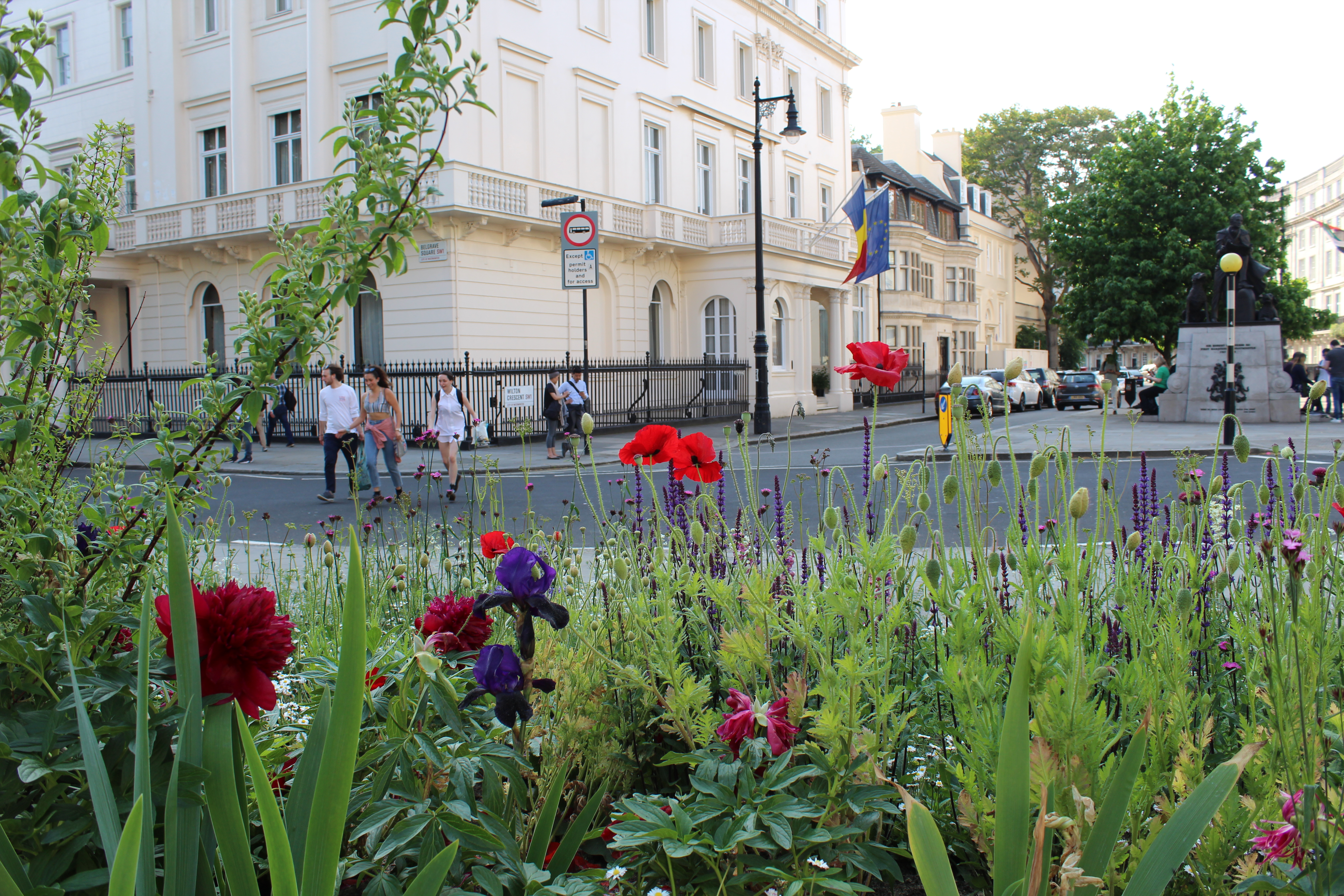 Când am plecat de la Londra, în iulie 2018, Grădina românească din Belgrave Square era încă plină de flori, iar dintre frunze se pregăteau să-și arate rotunjimile primele căpșune.