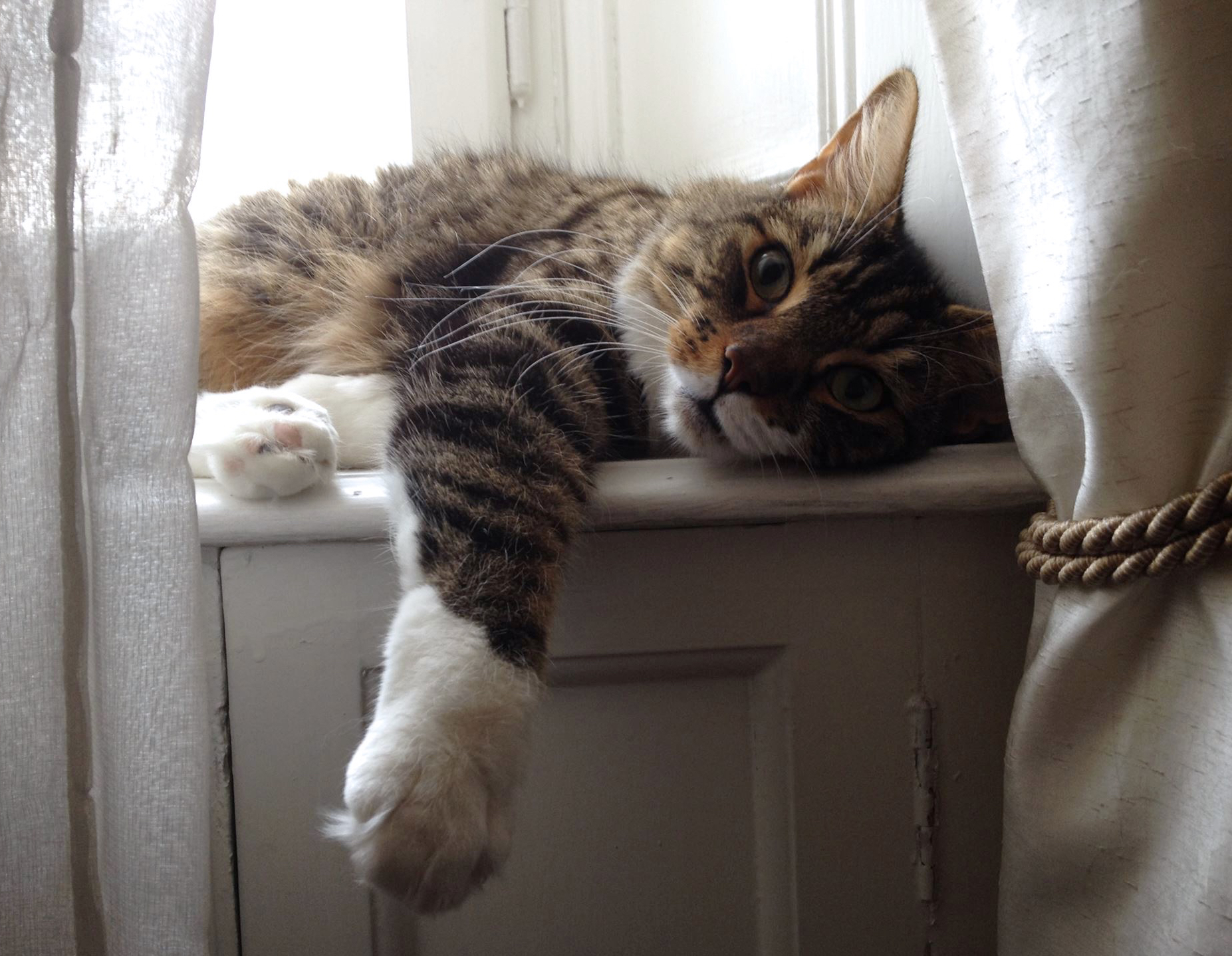 Inspecția a decurs fără probleme până ce am considerat că se cuvine să divulg existența monstrului care bântuia prin încăperile apartamentului nostru și care ar fi putut să provoace neplăceri. Fețele detectivilor s-au întunecat brusc și, tocmai atunci, ca ascultând de o regie secretă, vădit deranjată de prezența străinilor pe teritoriul controlat de ea, și-a făcut apariția o fiară blănoasă, cu ochii dilatați de furie și urechile lăsate amenințător pe spate. Întrevederea a fost scurtă și ostilă – totuși, spre surprinderea mea, motanul Alaric a trecut de proba interviului și aprobarea a fost dată.