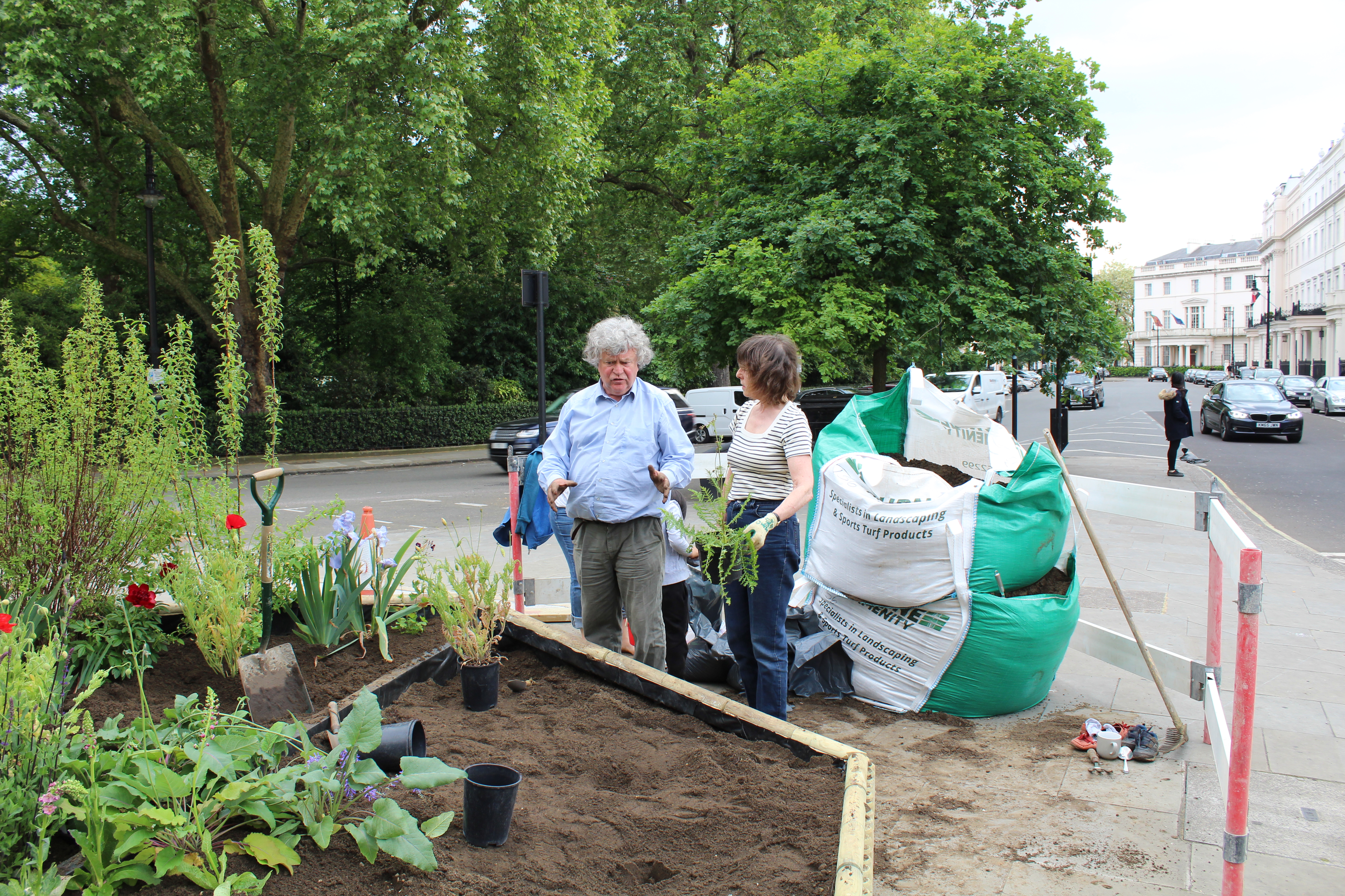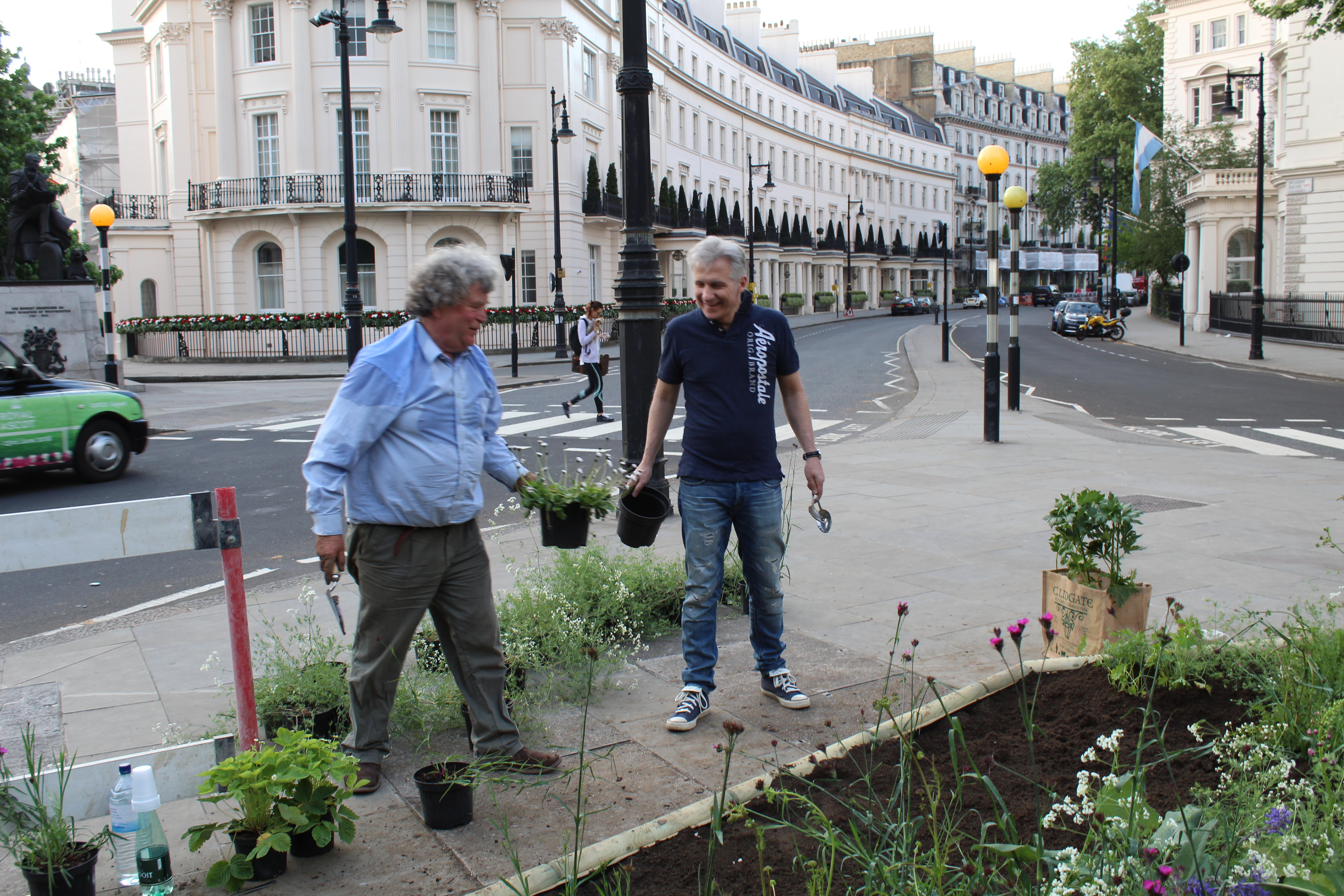 Grădina-instalație din Belgrave Square a continuat să capteze atenția trecătorilor mai multe luni și chiar să atragă vizitatori neobișnuiți precum domnul din fotografie, botanist amator și fotograf premiat, care mi-a mărturisit că își dedică viața studierii unei singure plante, Fritillaria (laleaua pestriță sau, în varianta „imperială”, Floarea Paștelui) și că pregătește despre această floare o expoziție în aer liber pe Southbank-ul londonez, intenționând să o prezinte din perspectiva mai multor domenii, de la botanică, la istoria religiilor și literatură. Am verificat ulterior pe internet atât denumirile florii, cât și numele botanistului-fotograf și pot confirma că domnul Laurence Hill există în realitate, nu a fost doar o emanație a fanteziei mele stimulate de bucuria grădinăritului.